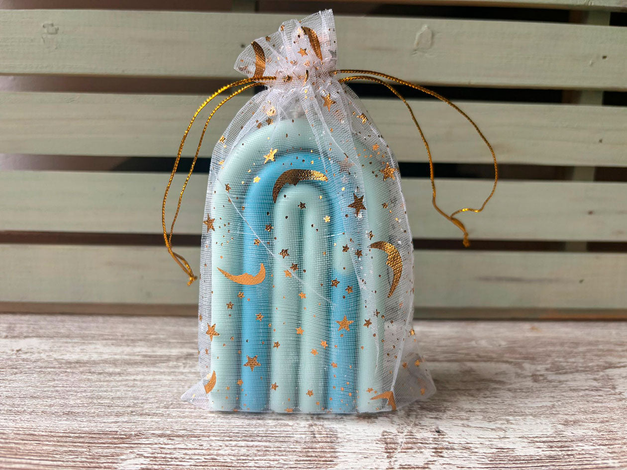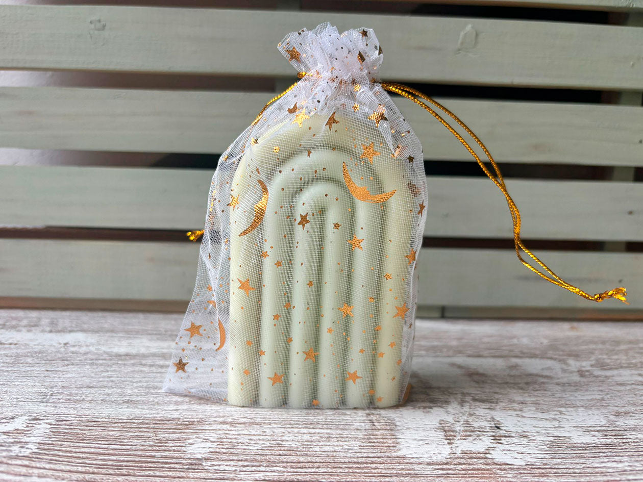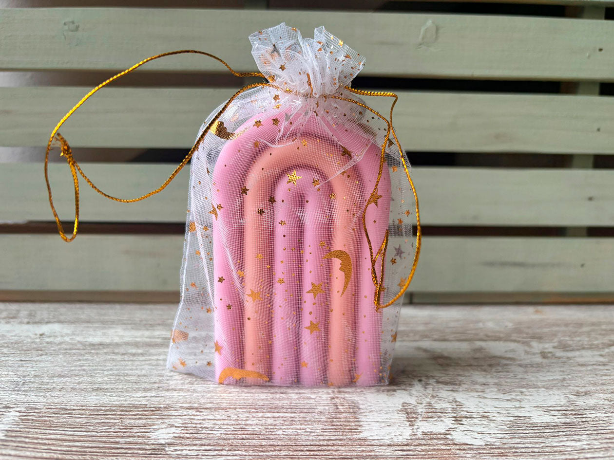 Vela arcoíris, elaborada con cera de soja de alta calidad, ahora con un único aroma, azafrán sagrado.