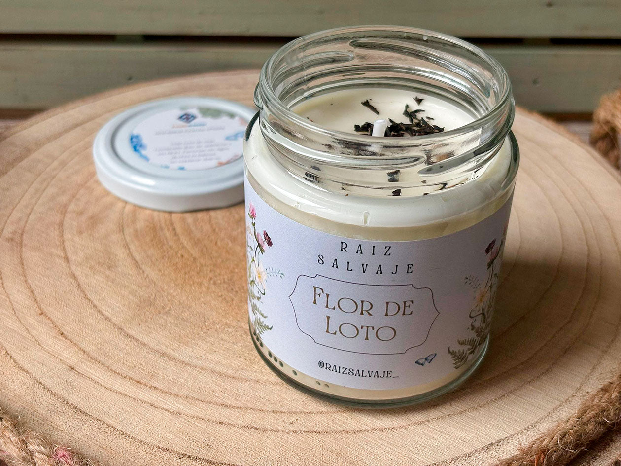Velas naturales de cera de soja. Podrás elegir entre cuatro aromas suaves y con ingredientes que harán que tu cuerpo, mente y alma se relajen y te hagan transportarte a la naturaleza más salvaje. Vienen en un recipiente de vidrio con tapa. Decorada en la parte superior con flores secas.